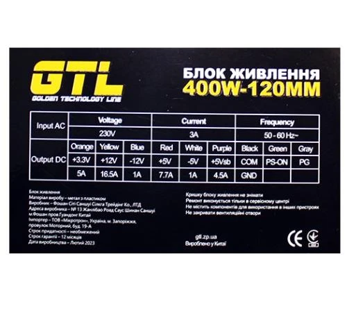 Блок живлення GTL 400W (GTL-400-120) – надійне серце вашого ПК