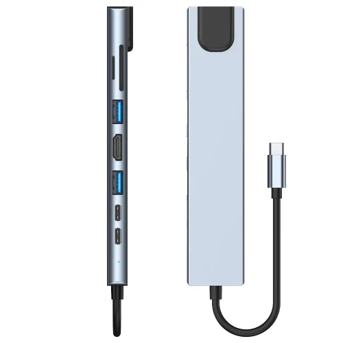 Потрібен додатковий порт для флешки, SD-карти або швидкого Ethernet? GTLHUB8IN1 дає все це і трохи більше: один Type-C із підтримкою 100 Вт для живлення, ще один Type-C 2.0, USB 3.0, USB 2.0, HDMI для зовнішнього монітора, гігабітний LAN, microSD і SD. Простий набір, але дуже універсальний.